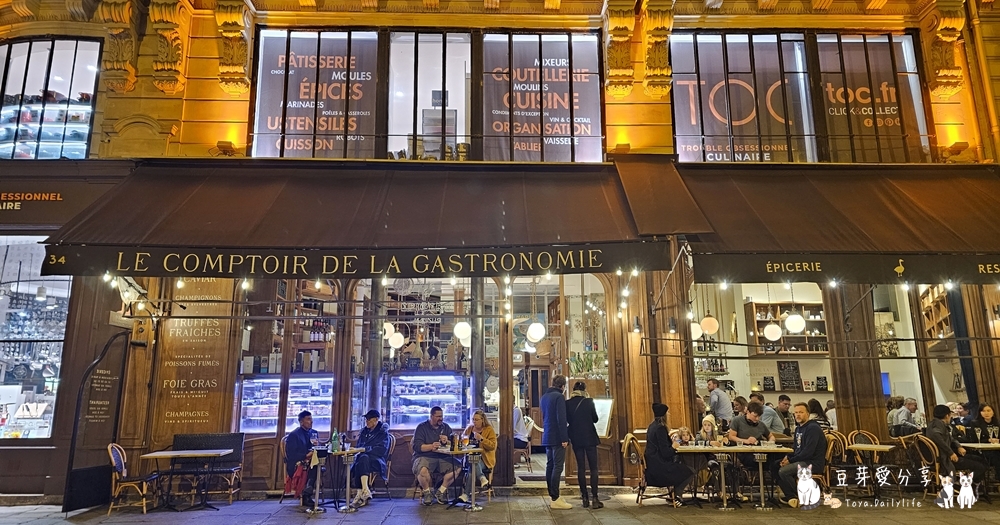 夜晚亮起燈來的 Comptoir de la Gastronomie 看起來更有氛圍,戶外座位幾乎客滿 (照片為用餐完畢後拍攝)。